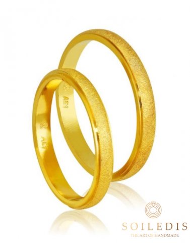 Βέρα γάμου σε συνδυασμό σαγρέ και λουστρέ φινιρίσματος. Φάρδος βέρας 3,00mm. Δυνατότητα κατασκευής σε 14 ή 18 καράτια, σε όλα τα χρώματα και συνδυασμούς.