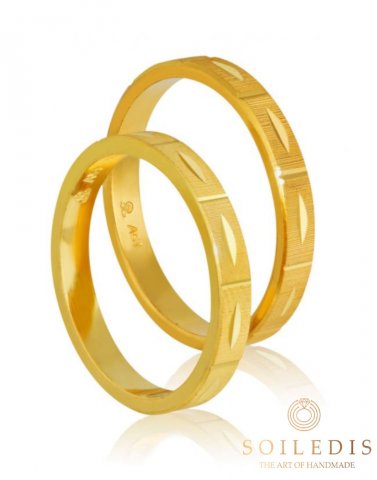 Βέρα γάμου με γυαλιστερού φινιρίσματος και δύο διαμανταρισμένες παράλληλες γραμμές. Φάρδος βέρας 3,50mm.