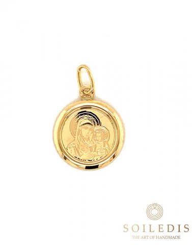 Κρεμαστό θρησκευτικού περιεχομένου, σε κίτρινο χρυσό, με απεικόνιση της Παναγία μαζί με τον Χριστό.