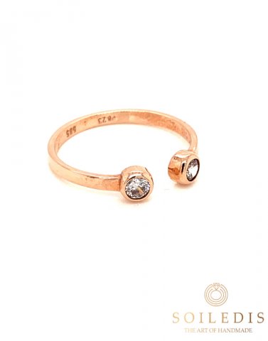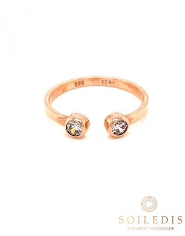 Δαχτυλίδι από ροζ χρυσό, ανοιχτό, με δυο λευκά Ζιργκον στα τελειώματα του.
