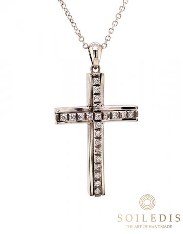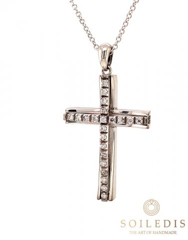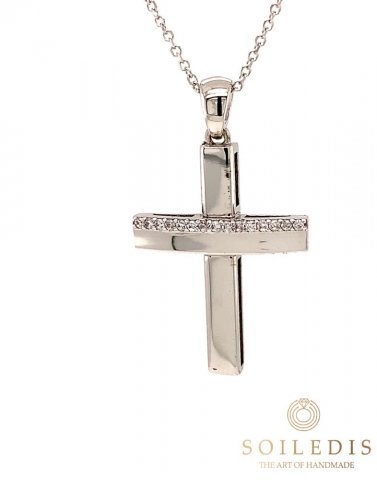 Γυναικείος σταυρός από λευκό χρυσό, 14 καρατιών, με λευκά Ζιργκόν στον οριζόντιο άξονα.