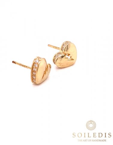 Σκουλαρίκια γυναικεία από ασήμι σε κίτρινο επιχρύσωμα, με λευκά Ζιργκόν τοποθετημενα περιμετρικά της καρδιας