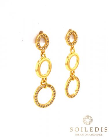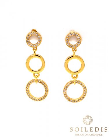 Σκουλαρίκια γυναικεία από ασήμι σε κίτρινο επιχρύσωμα, με λευκά Ζιργκόν