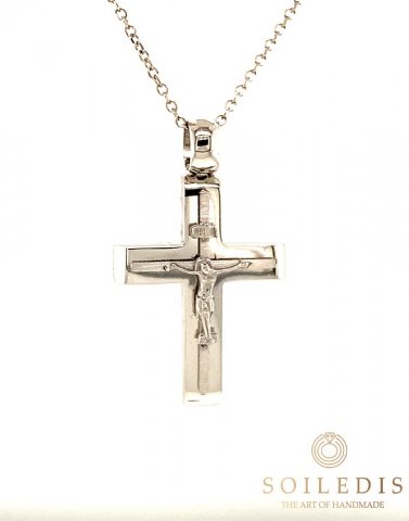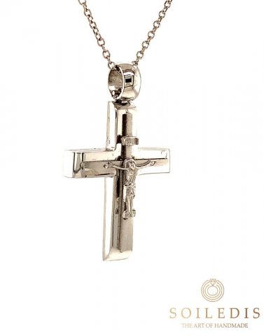 Αντρικός σταυρός από λευκό χρυσό, 14 καρατίων, με ματ φινίρισμα στην επιφανεια του και γυαλυστερο στα πλαινα του.