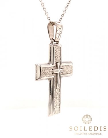 Αντρικός σταυρός από λευκό χρυσό, 14 καρατίων, με  σφυρήλατο φινίρισμα.