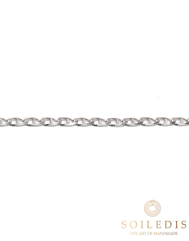 Αλυσίδα αντρική μασίφ τύπου "θήτα πλακέ" , από λευκό χρυσό 14 καρατίων.