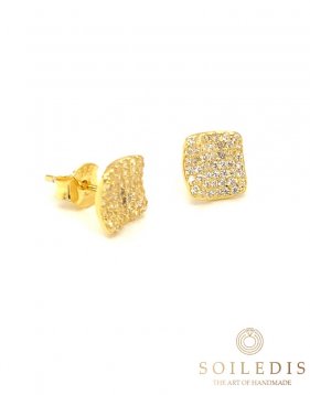 Σκουλαρίκια γυναικεία από ασήμι σε κίτρινο επιχρύσωμα, διακοσμημένα με λευκά Ζιργκόν.