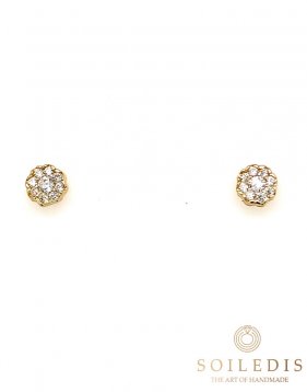 Σκουλαρίκια ροζέτες από κίτρινο χρυσό, με λευκά Ζιργκον.
