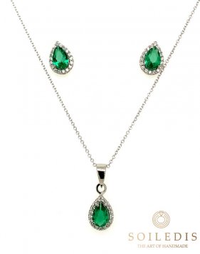 Σκουλαρίκια γυναικεία σε σχήμα δάκρυ, από λευκό χρυσό με κεντρική πέτρα λευκό Ζιργκόν δεμένη στο χερι με τέσσερα δόντια και περιμετρικά μικρότερα λευκά Ζιργκόν.