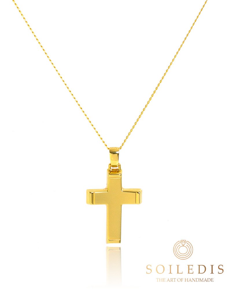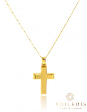 Αντρικός σταυρός από κίτρινο χρυσό, σε 9 ή 14 καράτια με γυαλιστερό και ματ φινίρισμα.