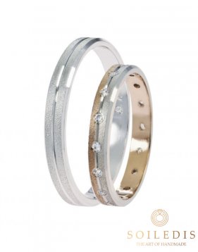 Βέρα γάμου με ματ και γυαλιστερό φινίρισμα και διαμανταρισμένο σχέδιο. Στη συγκεκριμένη βέρα μπορούν να "καρφωθούν" Διαμάντια ή Ζιργκόν. Φάρδος βέρας 3,00mm.